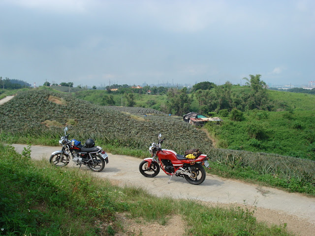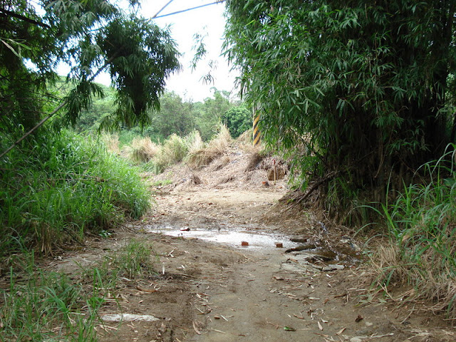 下去之後,水泥地路開始漸漸消失,取而代之的,是石頭和破裂斷掉的路,左右會出現落差的那種路(差一點我肥胖的車就卡住了)還好~~爭氣的衝過去!呵呵~~一路騎下來,草還是長得比人高,路卻是難騎無比(這路只適合用兩條腿移動)一下左轉,一下右轉,一下高,一下低的,真是令人想放棄的路呀~~
