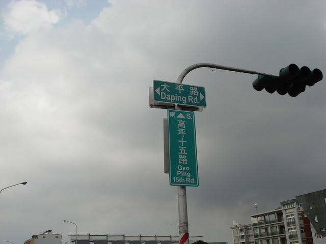 待轉中的方位,橫的路是大平路,直的後面是高坪十五路,前面沒路名(不過要往前走)