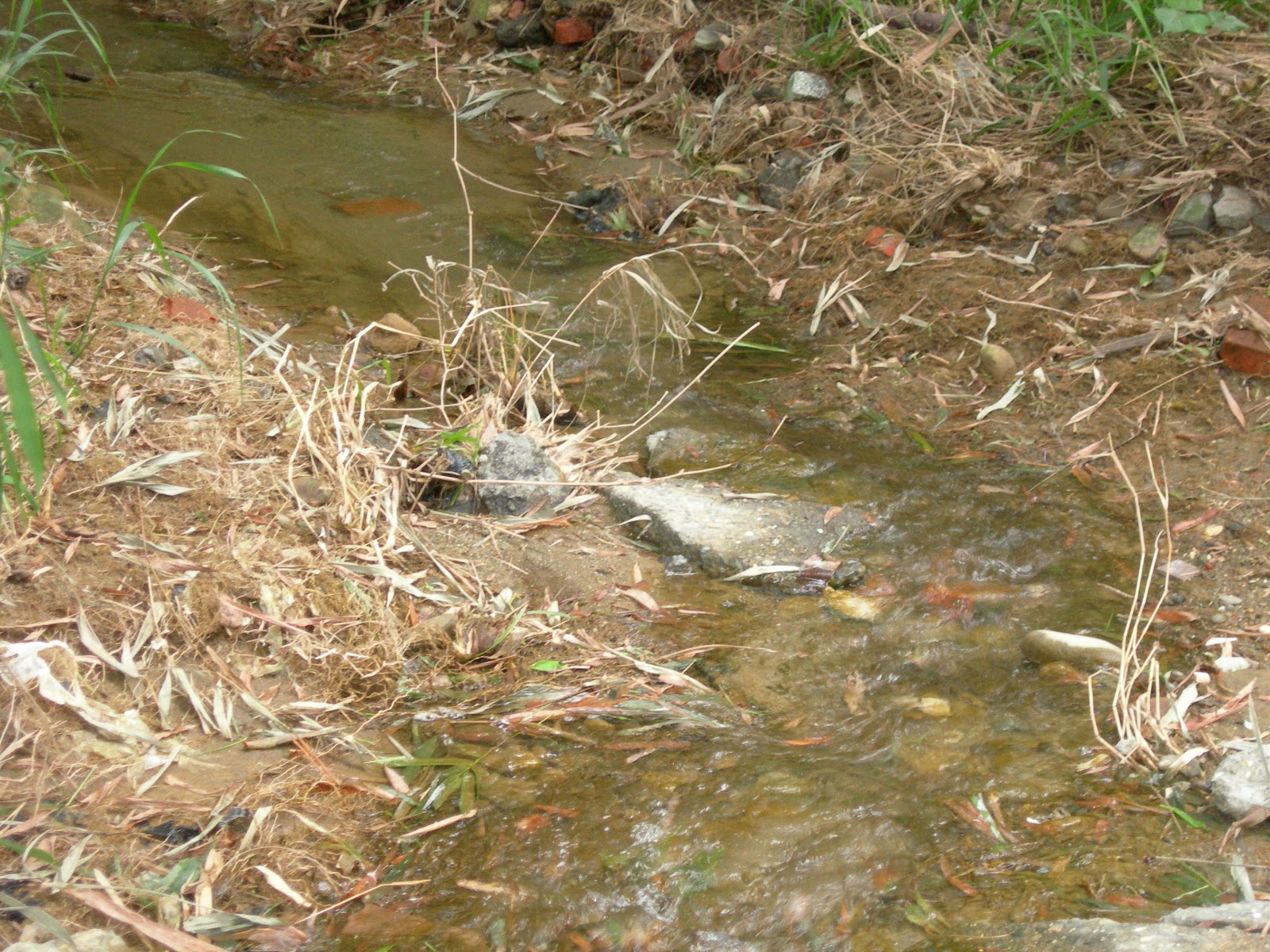 從貼著高爾夫球場旁的路騎進去,就會看見右手邊有一條小河,路已經開始爛的地方