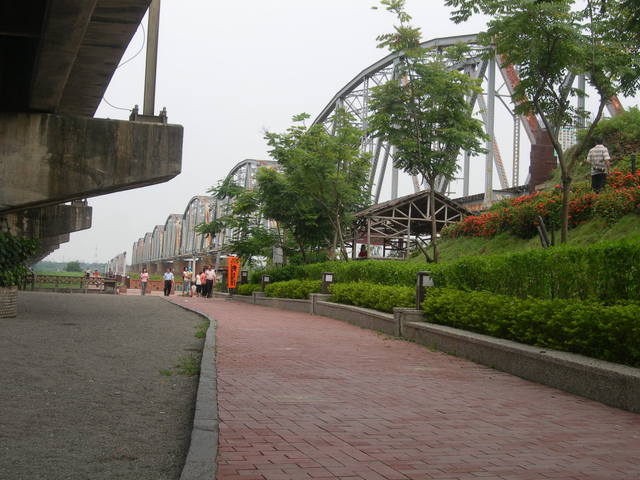 還有一直以來都存在的小山坡(其實是橋的開始那一端)索興就爬上去啦!這部份的造景都沒變,只是更精致了,學別人往橋裡面拍進去,看了看,似乎上面沒有想像中的好拍,就又走下來,走到一半,再拍張不同高度的鐵橋"透視"