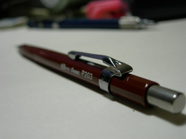 新買的自動鉛筆,要比當初那支貴了一點,要128.- ,最近準備考研究所,所以要準備一支抄筆記的筆,跟了我六年多以來的PILOT H-565 0.3mm自動鉛筆,終於可以退休了,而且型號已經都看不出來了!(上圖是新筆啦)