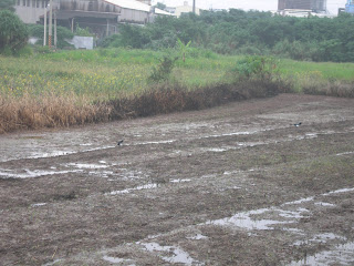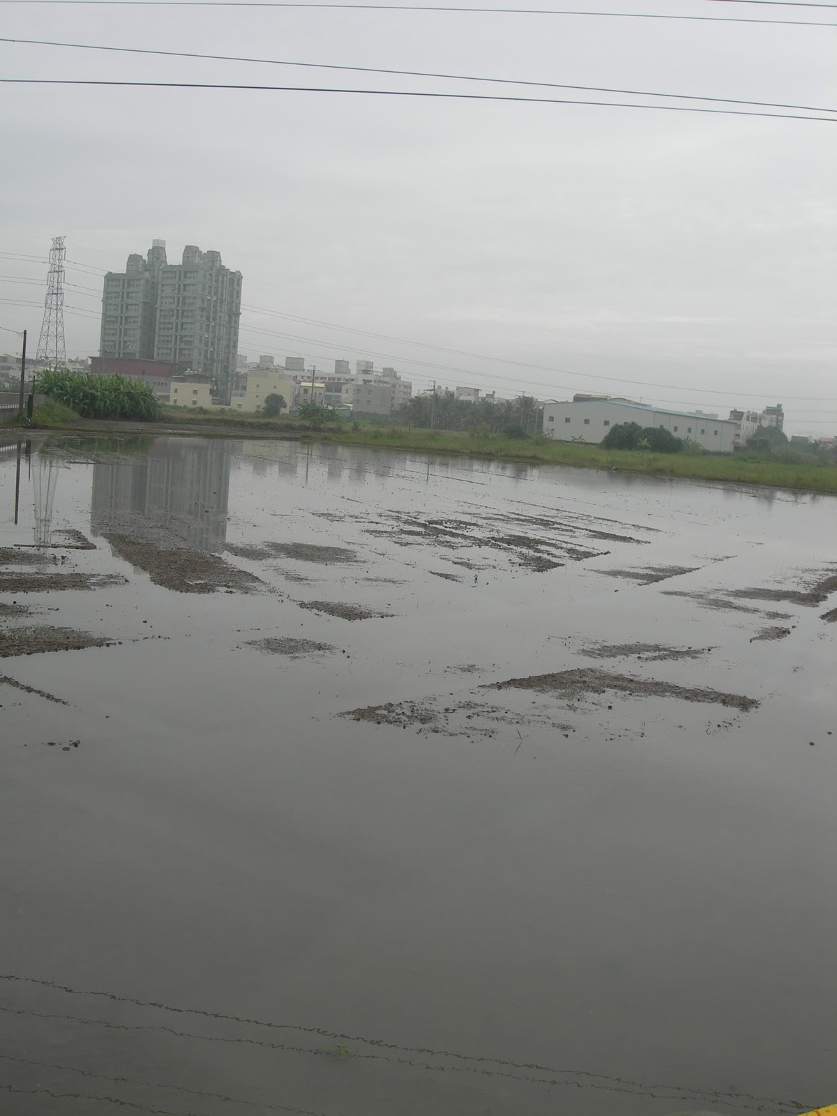 不知道這裡的作物,有沒有算在台灣作物的產量裡面,緊臨工業區(附近都是精密加工的產業),回頭再拍一張,沒有水稻的水稻田,積水的樣子。
