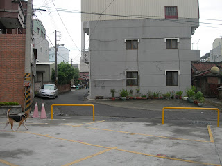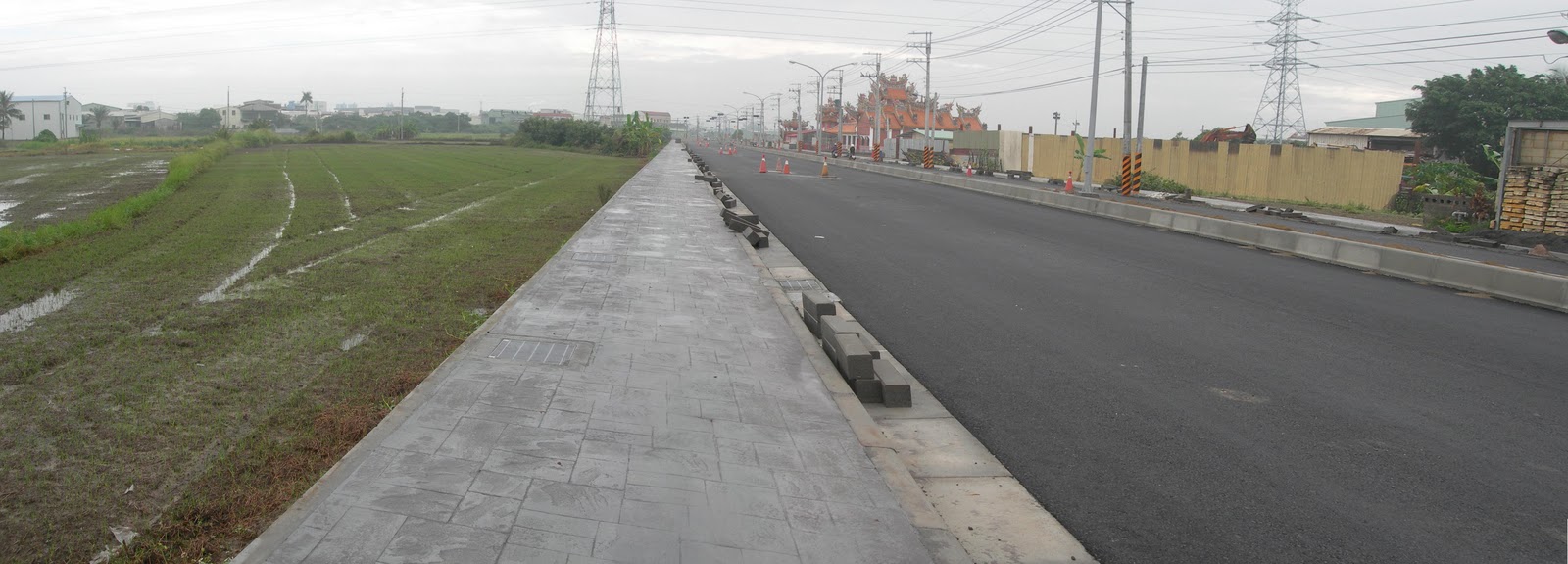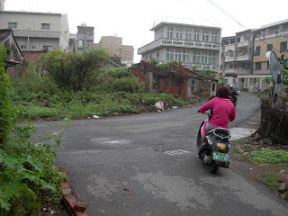 接下來,一路直走,經過了兩排很長的新房子(左邊那排的門面是使用清水模蓋的)