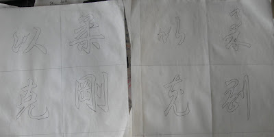 這次對自己的作品很有信心(哈哈~因為夠簡單,所以有信心,只是不知道有沒有人用過就是了),但是「以柔克剛」卻力量不足,原本想使用最簡單的元素,達到組成所有的字,這次我自己著重的重點在於細節的處理上,所以在每一個邊邊角角都很仔細的去處理。似乎忘記「整體設計」這件事,讓每一個字彼此失去了「關係」而單純的只是「用相同的元素組成」,並沒有形成「關係」,自然看不見設計的地方。果然要交作業,才會所有體會。