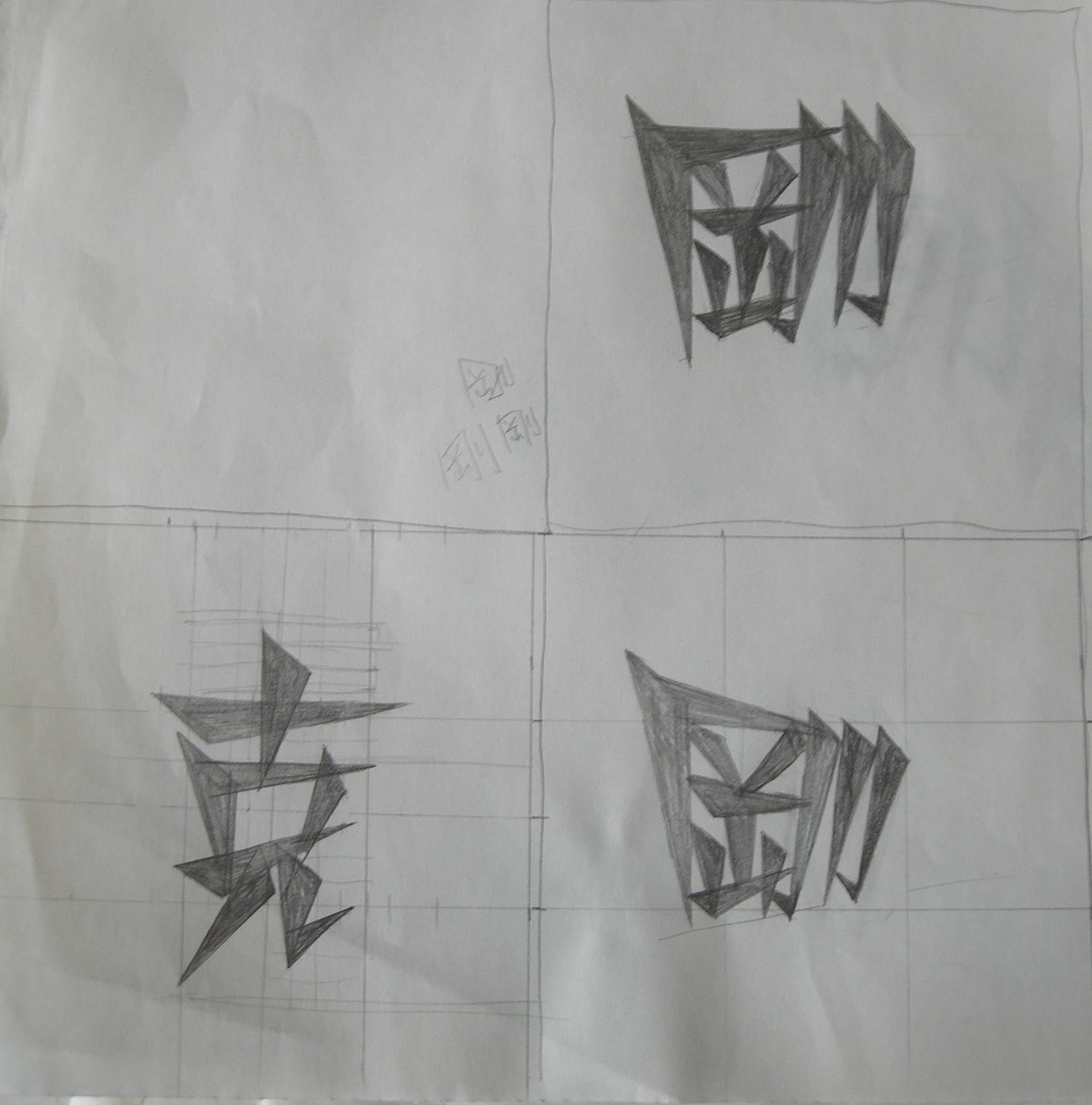 結果,我的心中浮現了一個又一個「角頭」的字,就是筆畫的開頭,都是角,然後過去是以胖胖體的方式表現,當然成效不彰,這次,以變體字的架構,三角形的筆畫做搭配,做出來的字體(不知道這樣算不算原創)