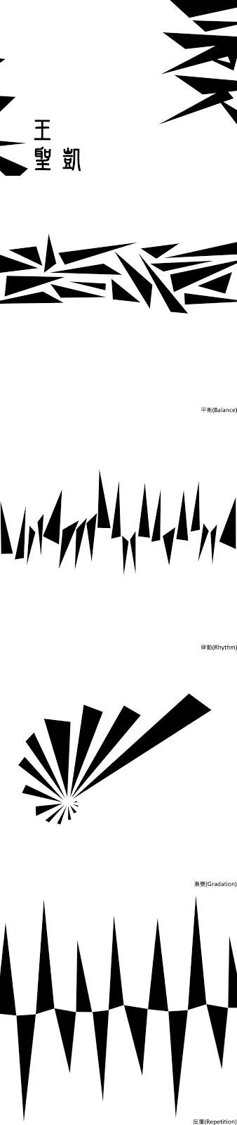雖然做平面,但是要有無限延伸的平面或空間,製做作品時,才不會被紙張大小限制住,在每一個美的原則中,都有隱藏著另一美感,交互作用,在真正使用時,不會單獨使用
