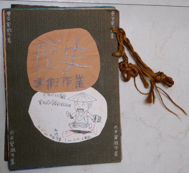 「因為每一次歷史的寒假作業,都千篇一律,所以這次出了十九個題目,大家只要挑其中四項來做就好了!這樣改起作業來,一定愉快又好玩」就做了這一本作業!