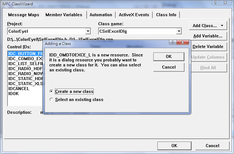 就在整理程式碼(刪掉SelXls/SelExcelDialog.h & SelXls/SelExcelDialog.cpp)之後,發現#include出了問題修正#include的檔案之後。