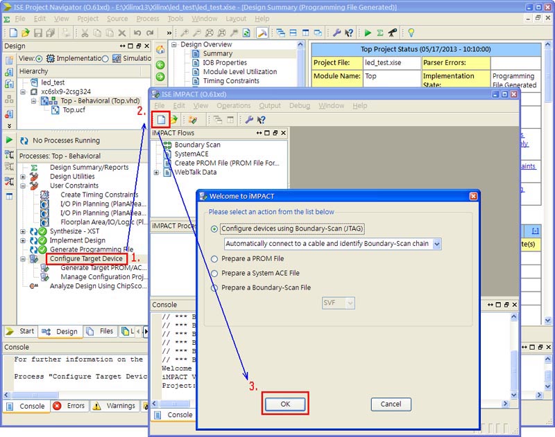 在這要介紹的,只是單純的直接對FPGA做config,簡單的說就是把.bit檔,直接放進FPGA。