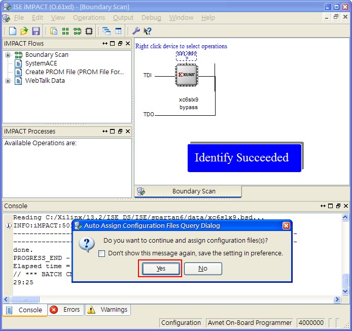 系統問你是不是要繼續手動選擇.bit檔(configuration file)→選Yes