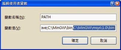 確定路徑是在c:\MinGW\msys\1.0\bin