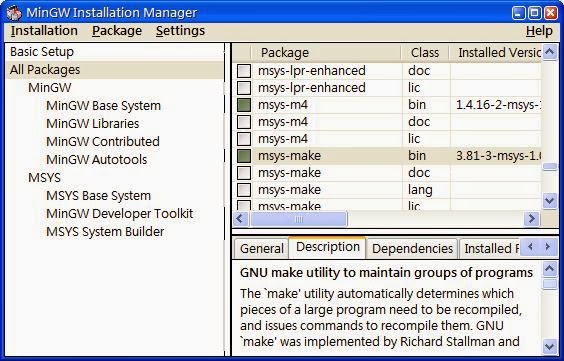 無法啟動程式,因為您的電腦遺失 zlib1.dll。請嘗試重新安裝以修正這個問題。這個問題,只要安裝mingw32-base,就可以解決囉!