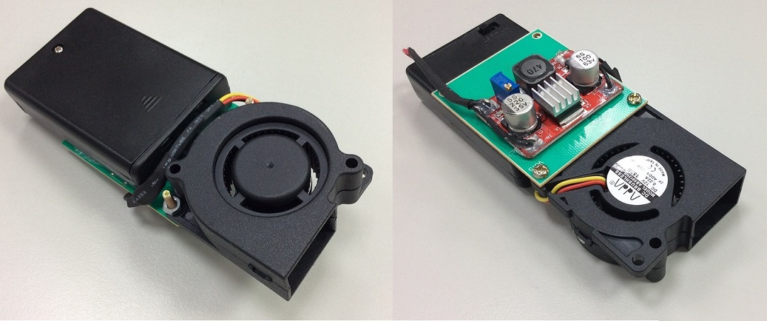 鼓式風扇、電池盒(AA×3)、升壓電路、手工